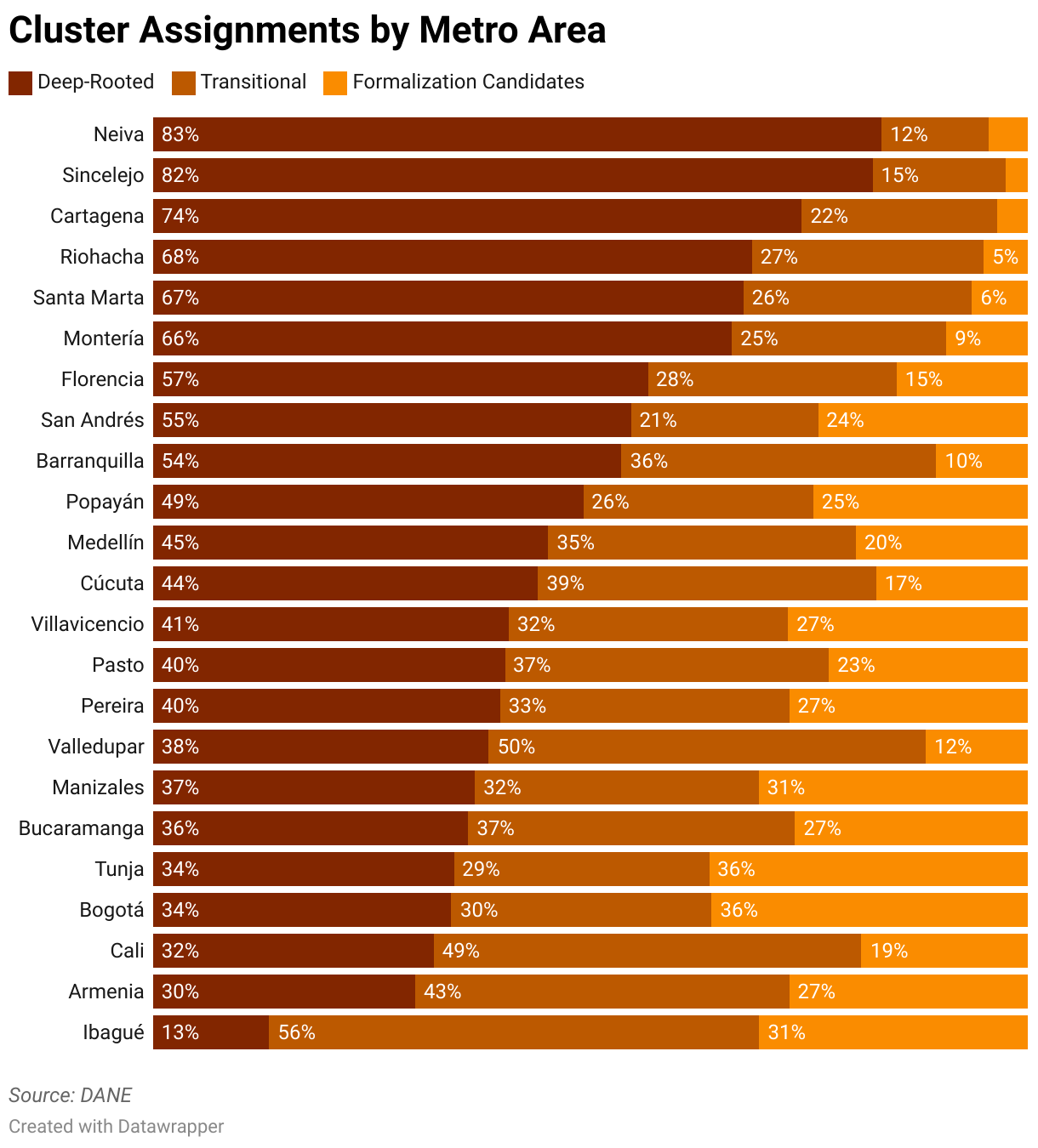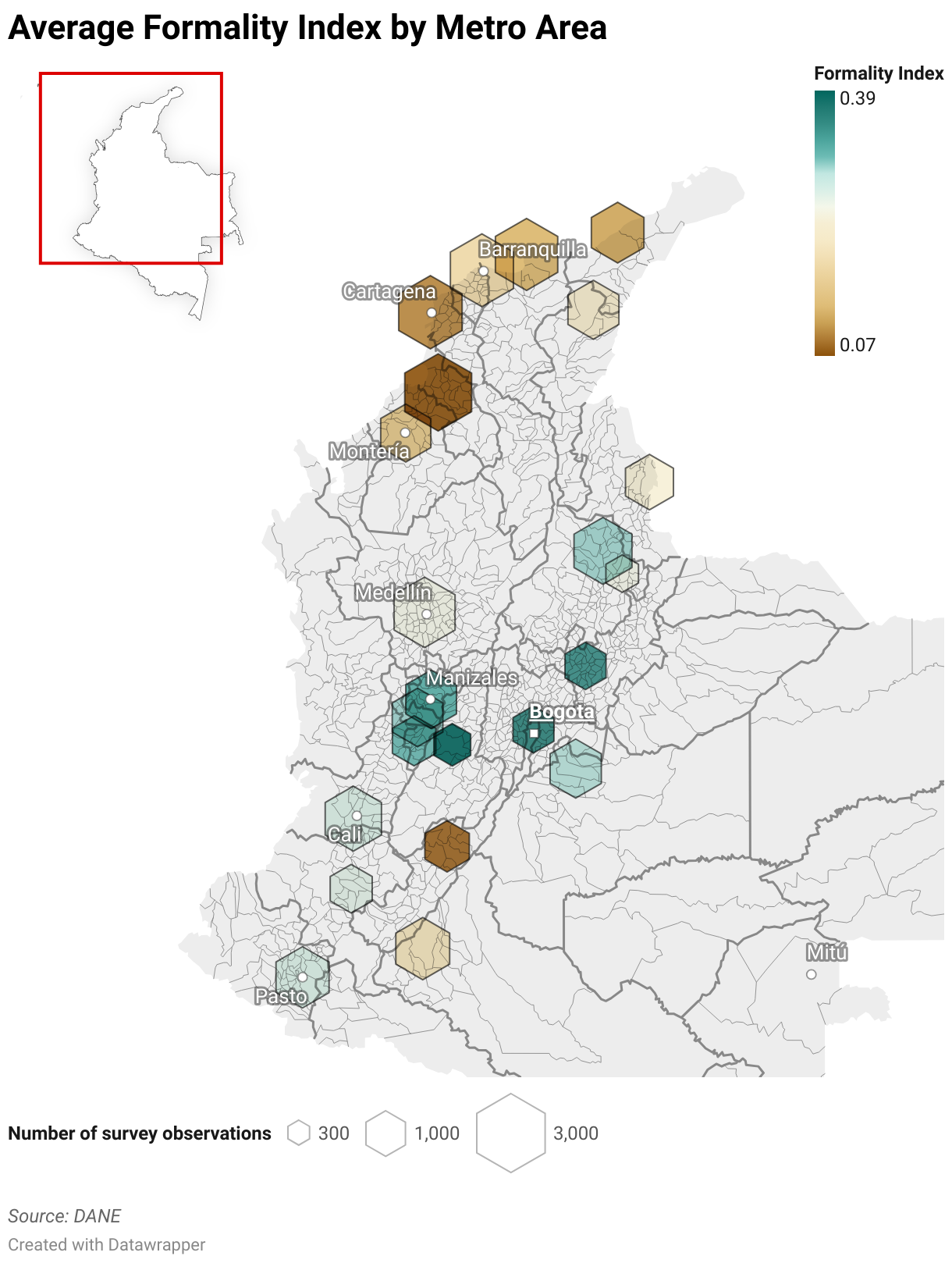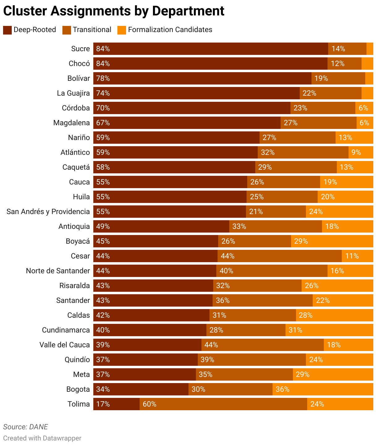 These are visualizations I created for a final project for PP422: Data Science for Public Policy. My colleagues and I were hired by UNDP Colombia to Classify informal small businesses using national survey data. Our aim was to identify distinct categories of micro-enterprises to help UNDP tailor formalization programming to businesses' specific needs.